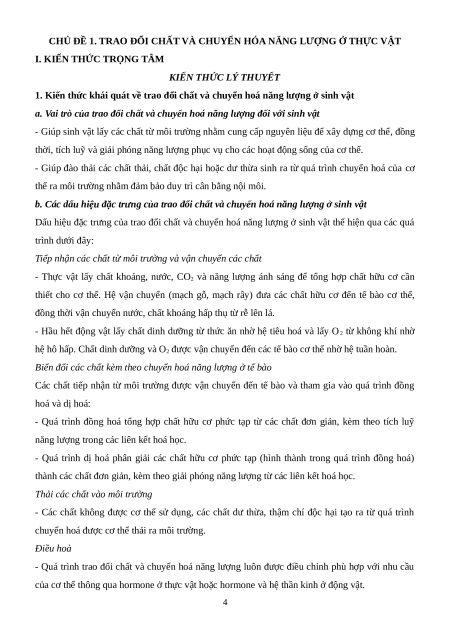 Chủ đề 1. Trao đổi chất và chuyển hóa năng lượng ở thực vật 4 375