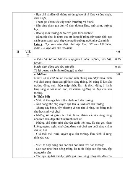 Tả lại quang cảnh sân trường giờ ra chơi. a. Mở bài: 3.0