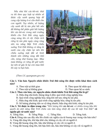 Đọc văn bản sau rồi thực hiện các yêu cầu bên dưới: