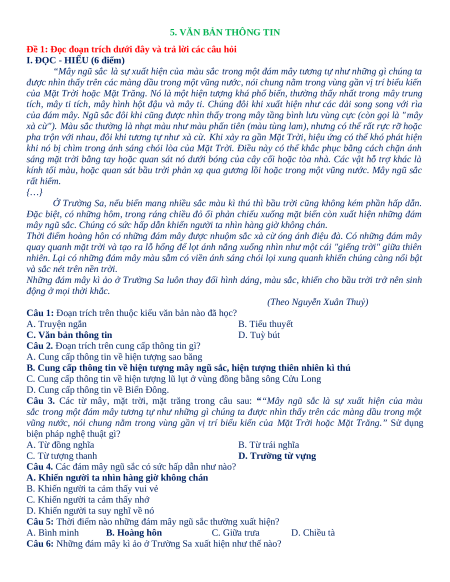10 Đề đọc hiểu Văn 8 Văn bản thông tin (cấu trúc mới)