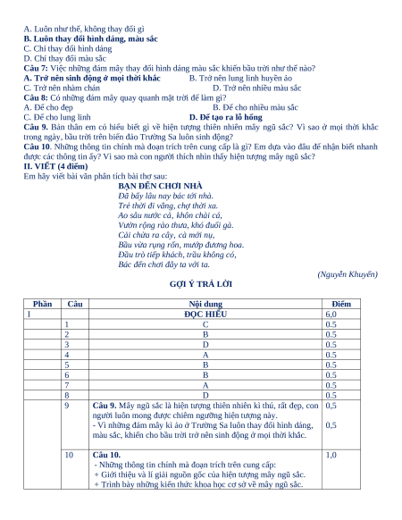 màu sắc, khiến cho bầu trời trở nên sinh động ở mọi thời khắc. 10 Câu 10. 1,0