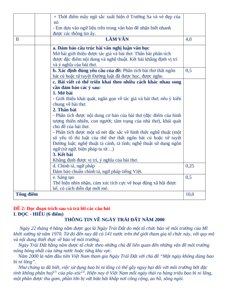 Khẳng định được vị trí, ý nghĩa của bài thơ. d. Chính tả, ngữ pháp 0,25