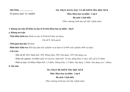 1. Khung ma trận đề kiểm tra học kì II môn Khoa học tự nhiên - lớp 8 a. Khung ma trận