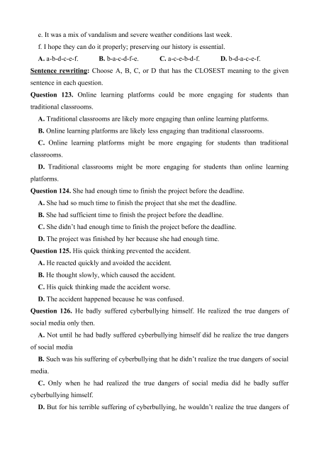 Question 123. Online learning platforms could be more engaging for students than traditional classrooms.