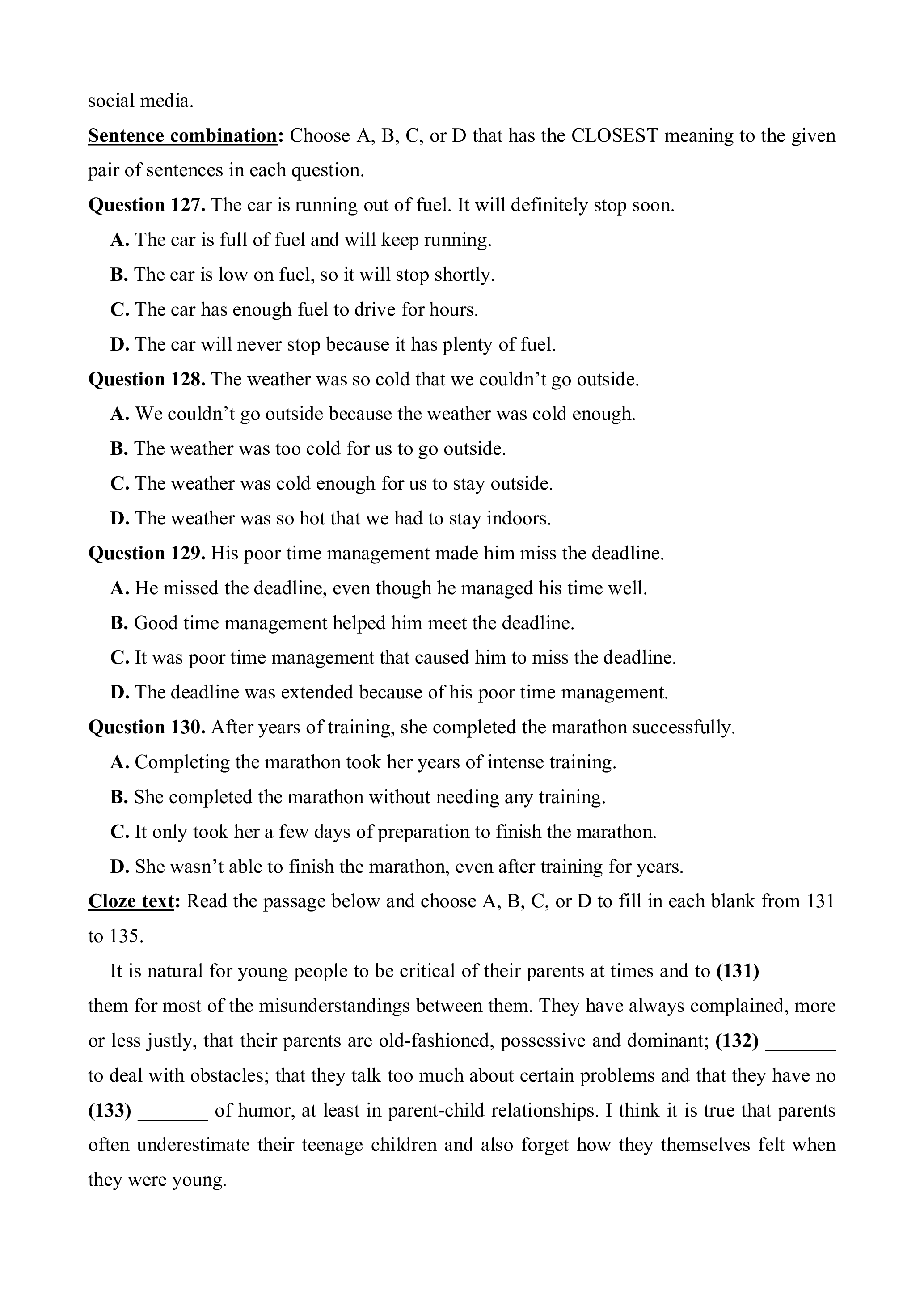 Phần thi thứ ba: Tiếng Anh từ câu hỏi số 101 đến 150
