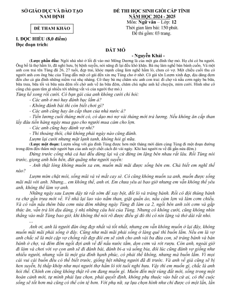 I. ĐỌC HIỂU (8,0 điểm) Đọc đoạn trích: ĐẤT MỎ - Nguyễn Khải -