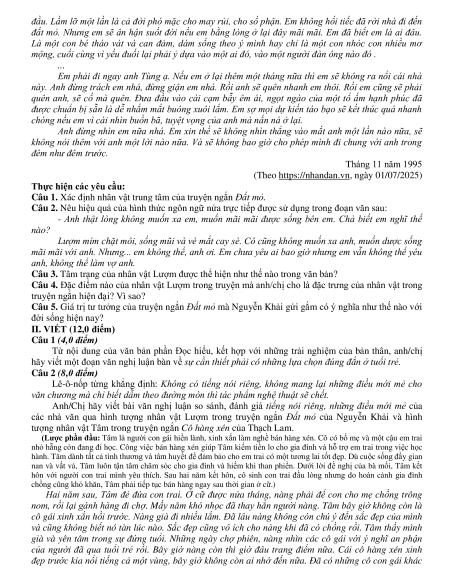 Câu 5. Giá trị tư tưởng của truyện ngắn Đất mỏ mà Nguyễn Khải gửi gắm có ý nghĩa như thế nào với đời sống hiện nay? II. VIẾT (12,0 điểm)