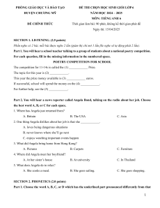 NĂM HỌC 2024 – 2025 MÔN: TIẾNG ANH 6 ĐỀ CHÍNH THỨC