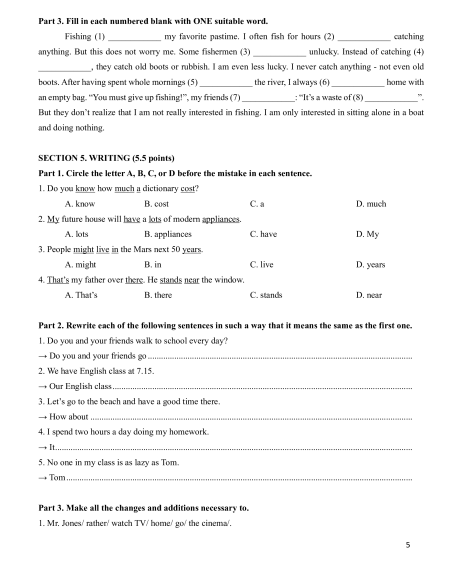 SECTION 3. VOCABULARY & GRAMMAR (4.5 points)
