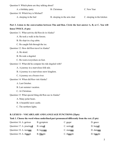 Part 2. Listen carefully and choose the best answer A, B or C. You will hear the recording TWICE. (5 pts)