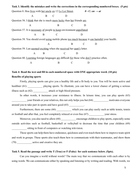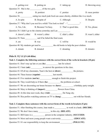 - Thí sinh không được sử dụng từ điển và các tài liệu khác.