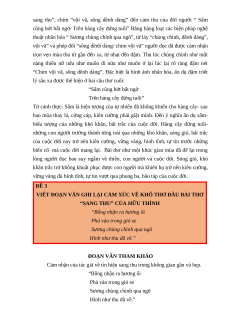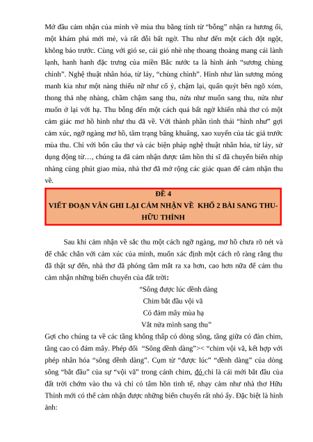 ĐỀ 2: VIẾT ĐOẠN VĂN NGHI LẠI CẢM XÚC VỀ BÀI THƠ “ SANG THU” –HỮU THỈNH-