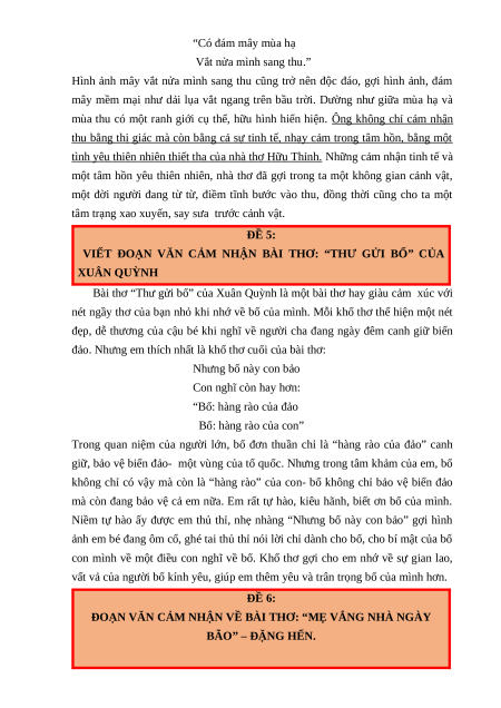 VIẾT ĐOẠN VĂN GHI LẠI CẢM XÚC VỀ MỘT BÀI THƠ BỐN CHỮ HOẶC NĂM CHỮ. ĐỀ 1