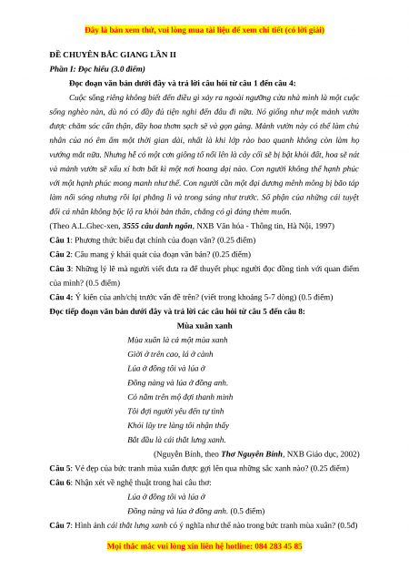 Phần I: Đọc hiểu (3.0 điểm)