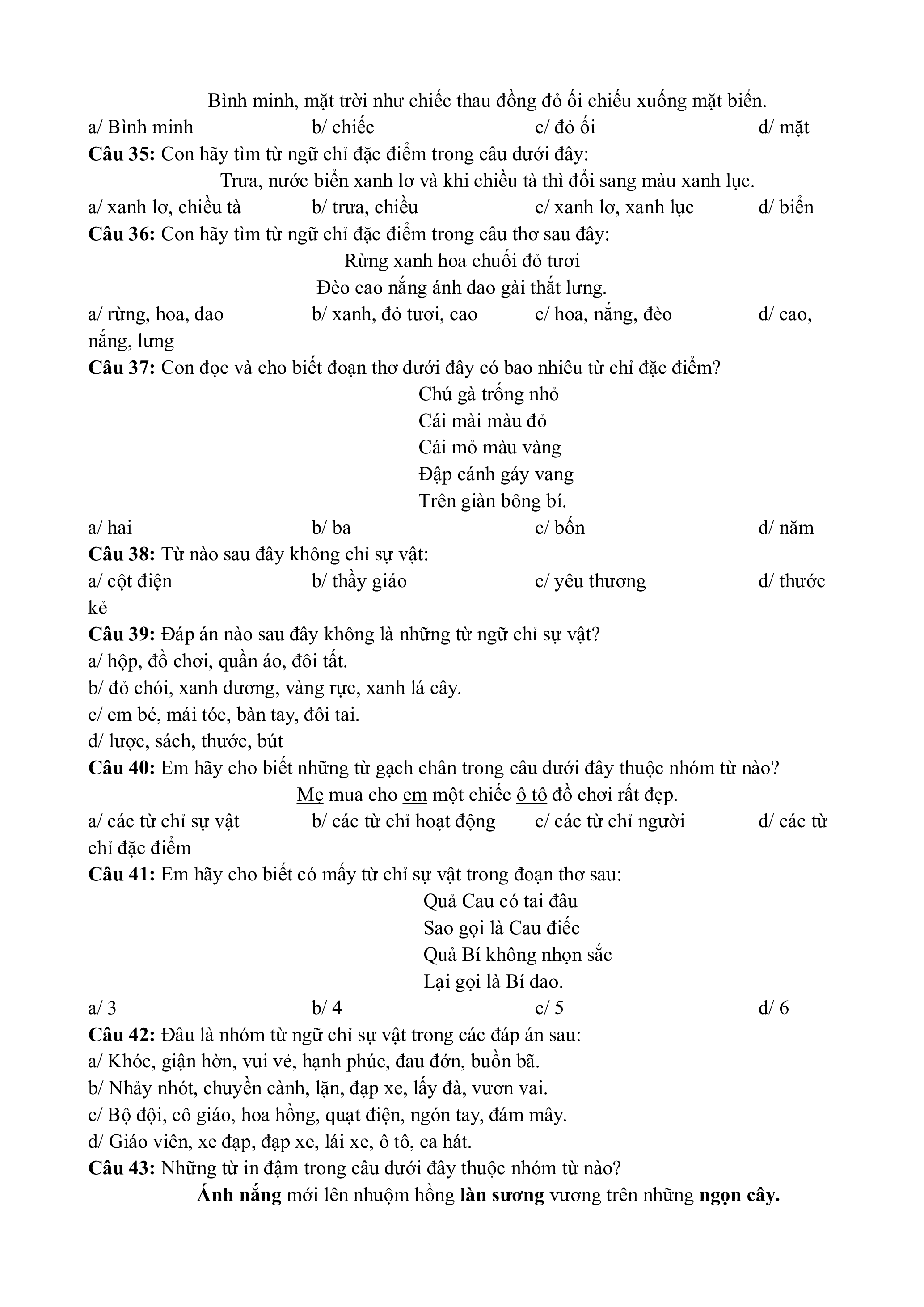 Câu 2: Nhóm từ nào sau đây gồm các từ chỉ sự vật?