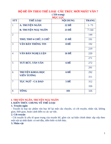 BỘ ĐỀ ÔN THEO THỂ LOẠI CẤU TRÚC MỚI NHẤT VĂN 7 ( 326 trang) MỤC LỤC STT THỂ LOẠI NỘI DUNG TRANG 1 A. TRUYỆN NGẮN 22 ĐỀ 1- 73