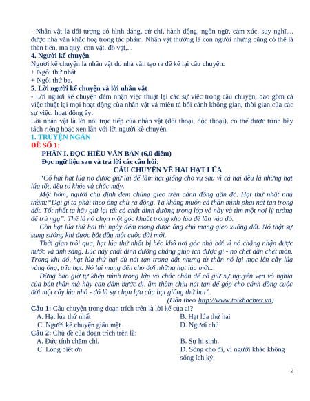 Câu 1: Câu chuyện trong đoạn trích trên là lời kể của ai? A. Hạt lúa thứ nhất B. Hạt lúa thứ hai