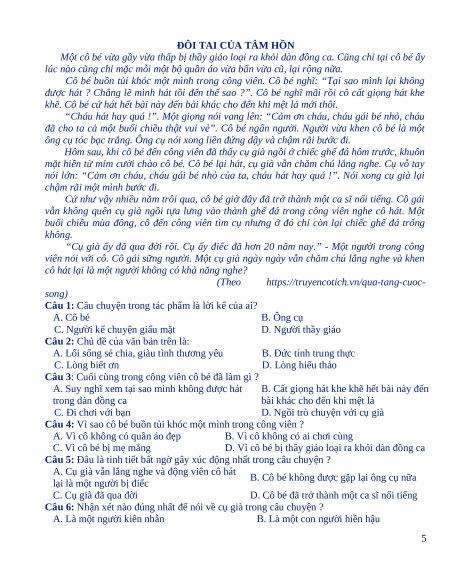 Câu 2: Chủ đề của đoạn trích trên là: A. Đức tính chăm chỉ. B. Sự hi sinh. C. Lòng biết ơn