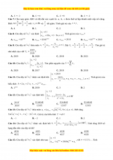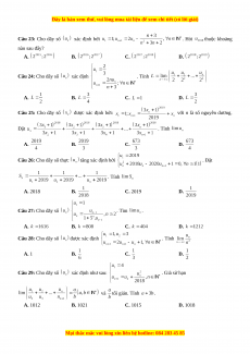 với n nguyên dương. Tính giới hạn A. B. C. D. Câu 19: Cho dãy số có . Đặt . Biết