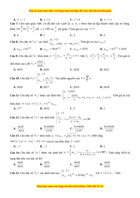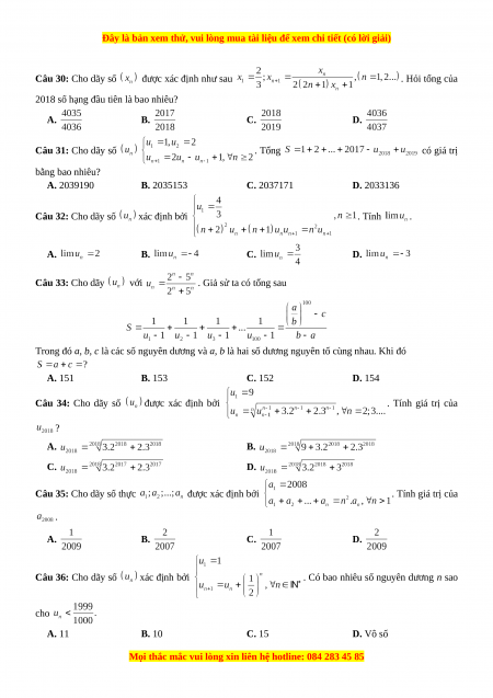 102 bài toán vận dụng cao dãy số - GV Nguyễn Minh Tuấn có đáp án