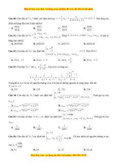 với n nguyên dương. Tính giới hạn A. B. C. D. 0 Câu 18: Cho dãy số xác định bởi