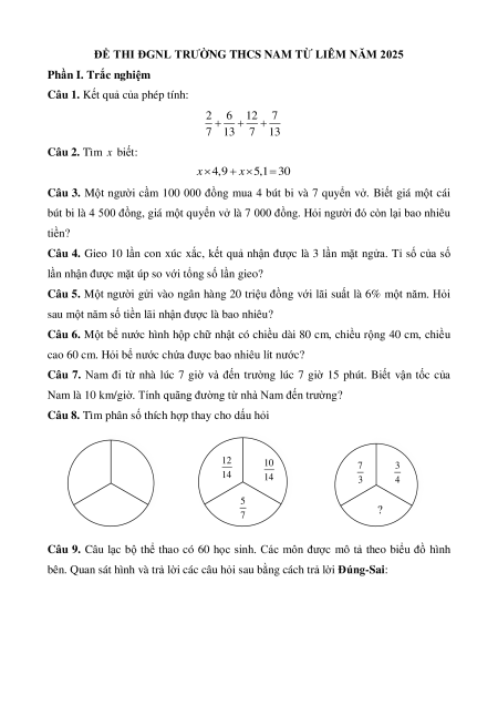 ĐỀ THI ĐGNL TRƯỜNG THCS NAM TỪ LIÊM NĂM 2025