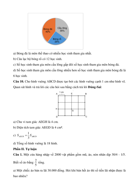 d) Tổng số hình vuông là 18 hình. Phần II. Tự luận
