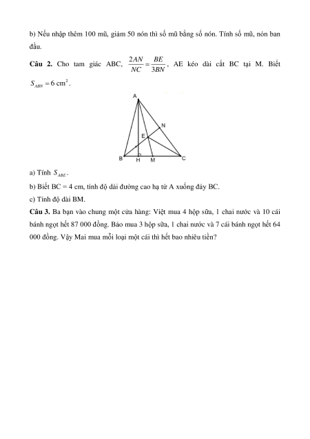 , AE kéo dài cắt BC tại M. Biết NC 3BN 2 S 6 cm . ABN a) Tính S . ABE