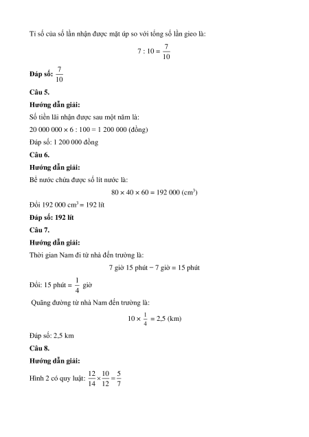 Câu 4. Gieo 10 lần con xúc xắc, kết quả nhận được là 3 lần mặt ngửa. Tỉ số của số