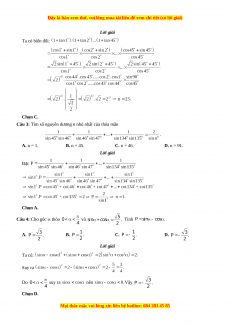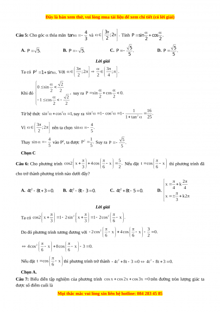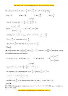Câu 5: Cho góc thỏa mãn và Tính A. B. C. D. Lời giải Ta có Với Khi đó suy ra Từ hệ thức suy ra Vì nên ta chọn Thay vào P2, ta được Suy ra Chọn C