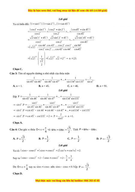 113 Bài tập trắc nghiệm lượng giác vận dụng cao - Nguyễn Minh Tuấn có đáp án