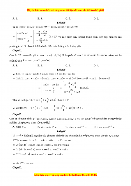 Câu 7: Biểu diễn tập nghiệm của phương trình