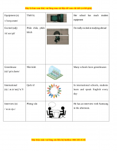 Equipment (n) Thiết bị Her school has much modern /ɪˈkwɪp.mənt/ equipment Excited (adj) Phấn chấn, phấn