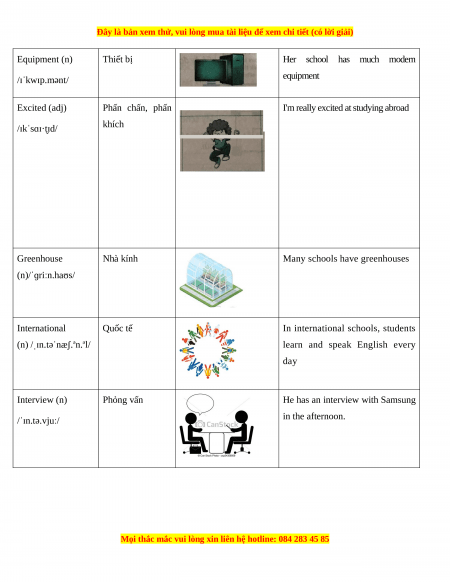 In international schools, students (n) /ˌɪn.təˈnæʃ.ən.əl/ learn and speak English every day Interview (n) Phỏng vấn