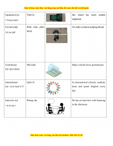 Equipment (n) Thiết bị Her school has much modern /ɪˈkwɪp.mənt/ equipment Excited (adj) Phấn chấn, phấn