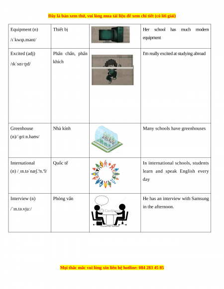 I'm really excited at studying abroad /ɪkˈsɑɪ·t̬ɪd/ khích Greenhouse Nhà kính Many schools have greenhouses (n)/ˈɡriːn.haʊs/ International Quốc tế