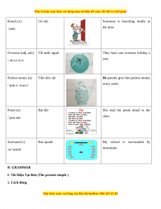 His parents give him pocket money /ˈpɒk.ɪt ˈmʌn.i/ every week. Poem (n) Bài thơ She read the poem aloud to the /ˈpoʊ.əm/ class. Surround (v) Bao quanh My school is surrounded by /səˈraʊnd/ mountains B- GRAMMAR
