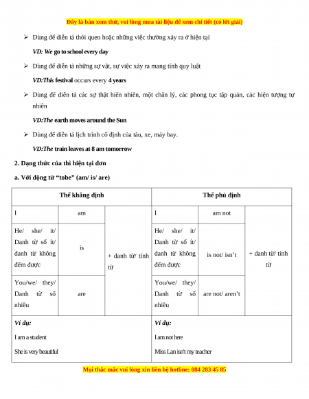 a. Với động từ “tobe” (am/ is/ are) Thể khẳng định Thể phủ định I am I am not He/ she/ it/ He/ she/ it/ Danh từ số ít/ Danh từ số ít/ is danh từ không