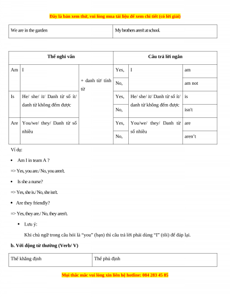 Thể nghi vấn Câu trả lời ngắn