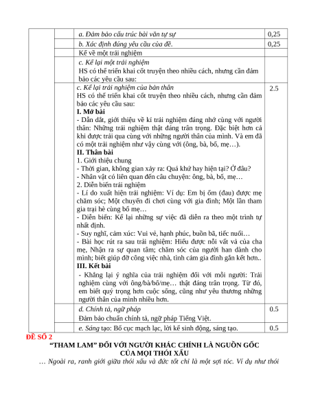 e. Sáng tạo: Bố cục mạch lạc, lời kể sinh động, sáng tạo. 0.5 ĐỀ SỐ 2