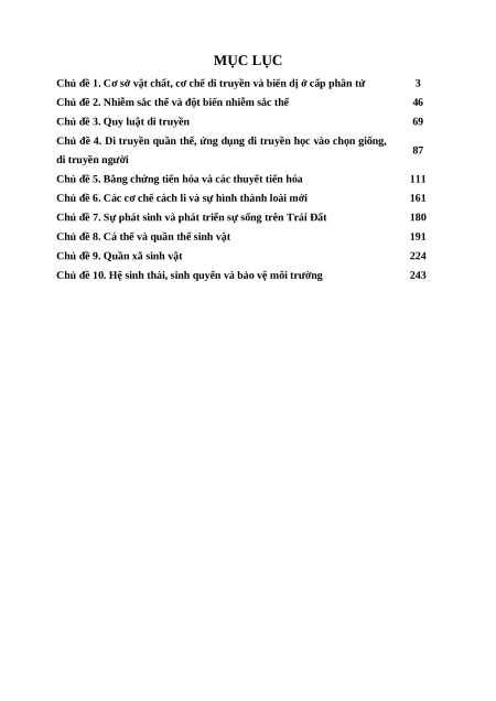 1200 CÂU TRẮC NGHIỆM LÍ THUYẾT SINH HỌC ÔN THI TỐT NGHIỆP MỤC LỤC