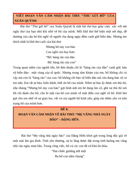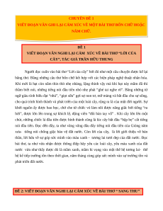 VIẾT ĐOẠN VĂN GHI LẠI CẢM XÚC VỀ MỘT BÀI THƠ BỐN CHỮ HOẶC NĂM CHỮ. ĐỀ 1