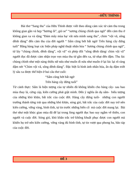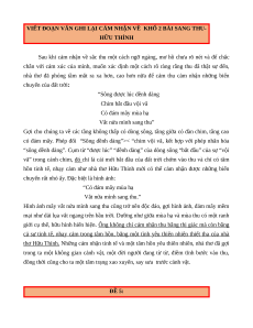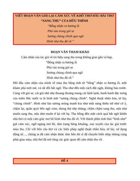 ĐỀ 2: VIẾT ĐOẠN VĂN NGHI LẠI CẢM XÚC VỀ BÀI THƠ “ SANG THU” –HỮU THỈNH-
