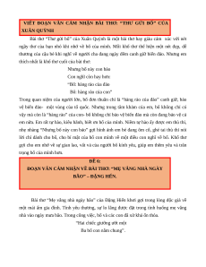 đồng thời cũng cho ta một tâm trạng xao xuyến, say sưa trước cảnh vật. ĐỀ 5: