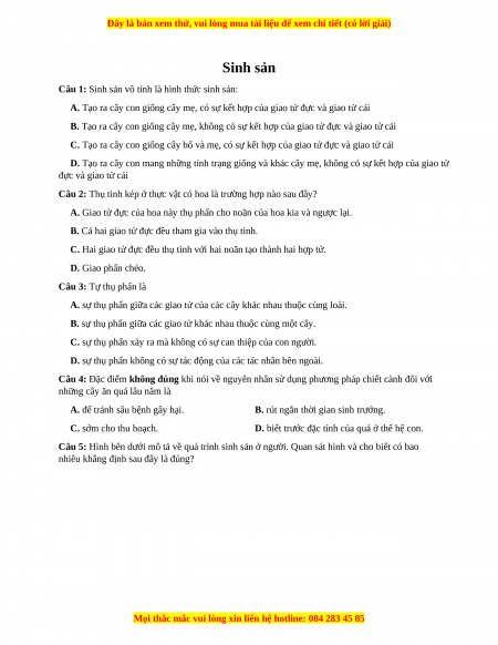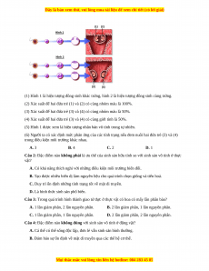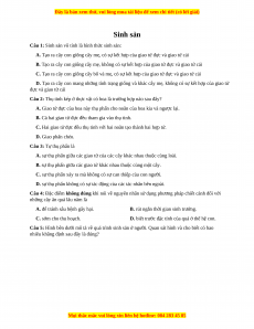 Câu 1: Sinh sản vô tính là hình thức sinh sản: