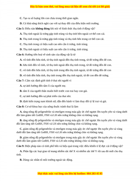 Câu 6: Hướng tiến hoá về sinh sản của động vật là từ