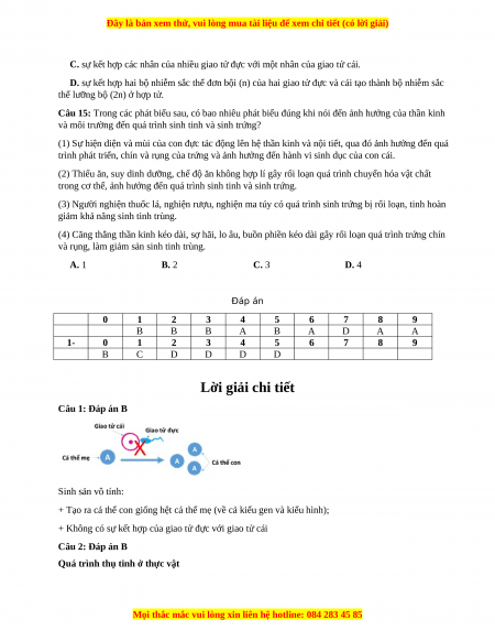 15,000 bài tập trắc nghiệm Sinh Học theo chuyên đề tách từ đề thi thử