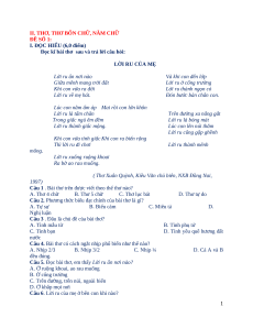Đọc kĩ bài thơ sau và trả lời câu hỏi: LỜI RU CỦA MẸ