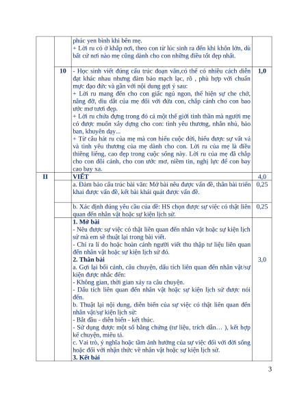 - Học sinh có thể có nhiều cách diễn đạt khác nhau nhưng đảm bảo 1,0