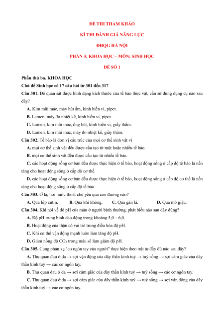 15+ Đề thi ĐGNL ĐHQG Hà Nội HSA môn Sinh học (có lời giải)
